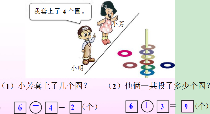 2.小明和小芳在玩套圈游戏,他们套上了一些圈。