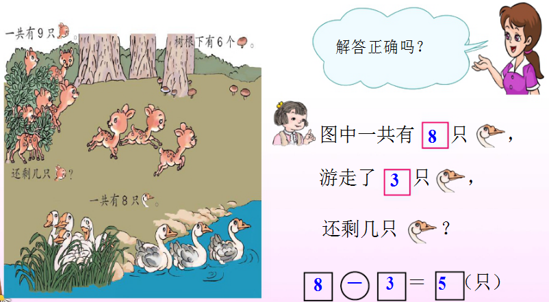 小学数学一年级下册8、9的减法应用