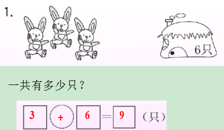 求总量,用加法;第二道题已知总量求分量,用减法。