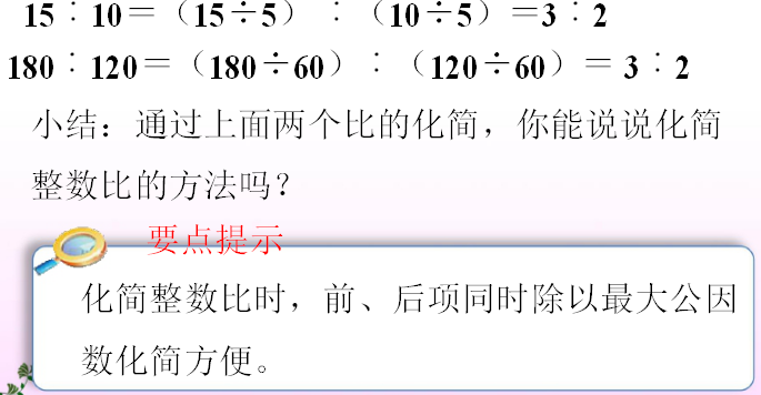 问题:哪些是整数比?哪些比的前项和后项是互质的?