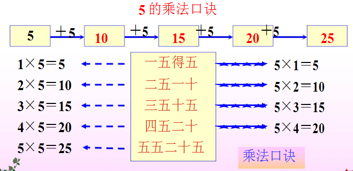 5的乘法口诀是根据几个5相加得来的,5的
