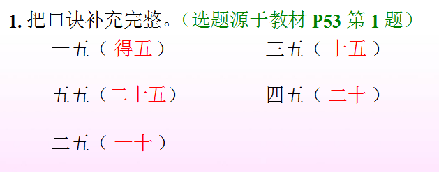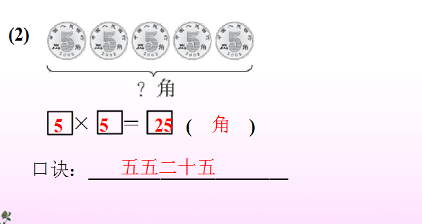 2. 除“五五二十五”外,利用每一句5的乘法口诀都可