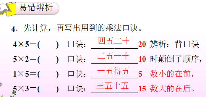 乘数不同的口诀可以写成两个乘法算式,乘数