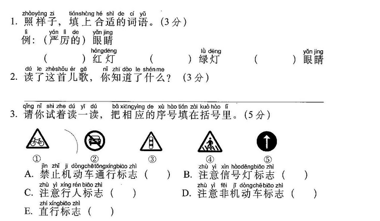 (两)(个)(黄)鹂(鸣)翠(柳),(一)(行 )(白)鹭(上)(青)(天)。
