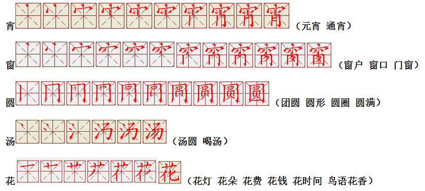 窗(外)(月)(儿)圆(又)圆,(全)(家)(团)聚(吃)汤圆。