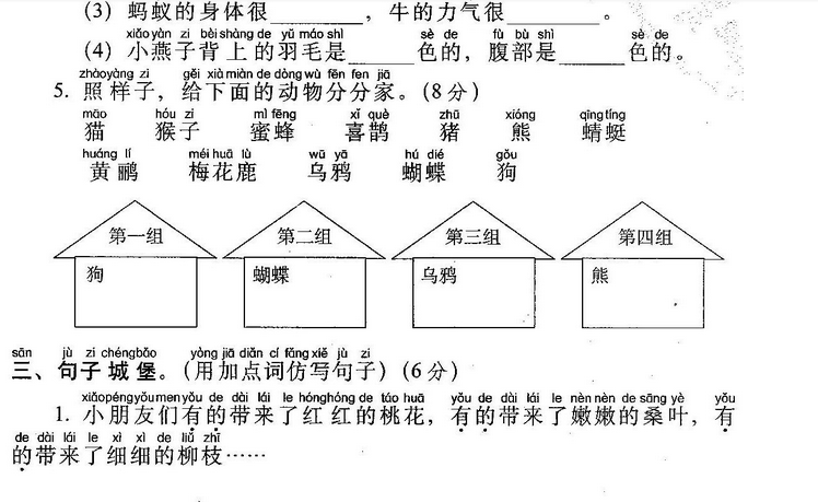 ( )的小草 ( )的动物 ( )的作业