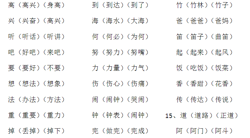 二.多音字归类整合:
