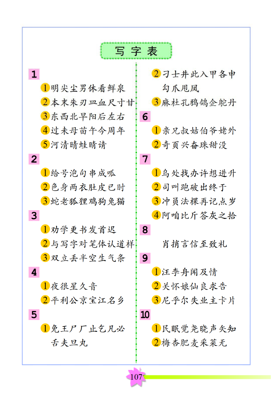 写字表