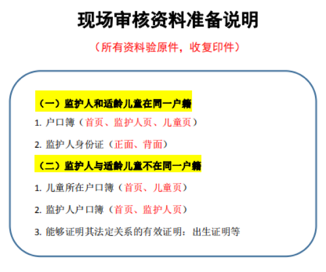 请家长来校审核前检查资料是否备齐,切勿大意,避免延长个人的审核时间,因为学校周围无复印店,请务必提前复印好资料。