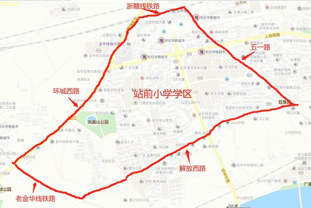 环城西路以东,五一路以西,解放西路与金华线铁路以北,浙赣线以南区域