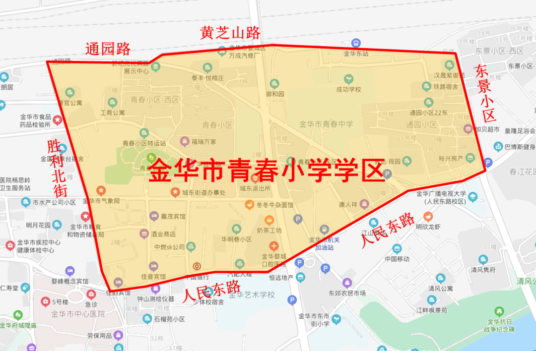 南至人民东路(双号420号至1108号),西至胜利北街(单号429号至715号),北至通园路、黄芝山路,东至通园小区。