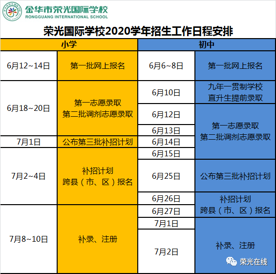 金华市荣光国际学校2020年小学一年级新生招生简章