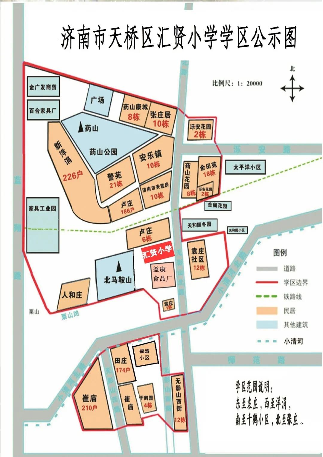 济南市天桥区汇贤小学学区东至袁庄社区,西至新洋涓,南至千鹤园,北至张庄社区。