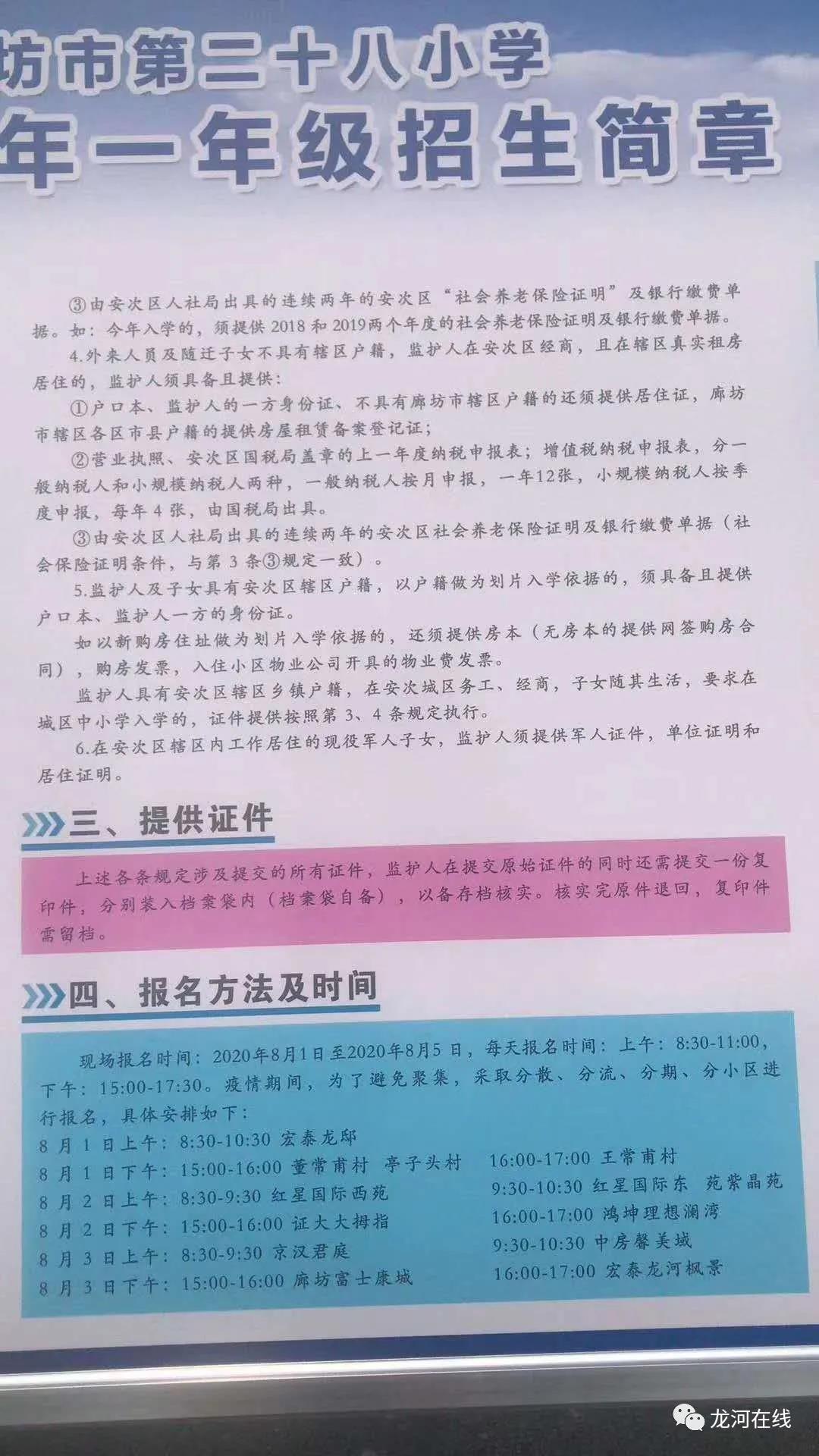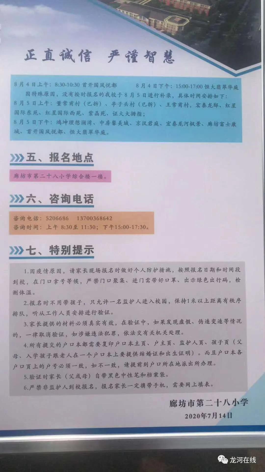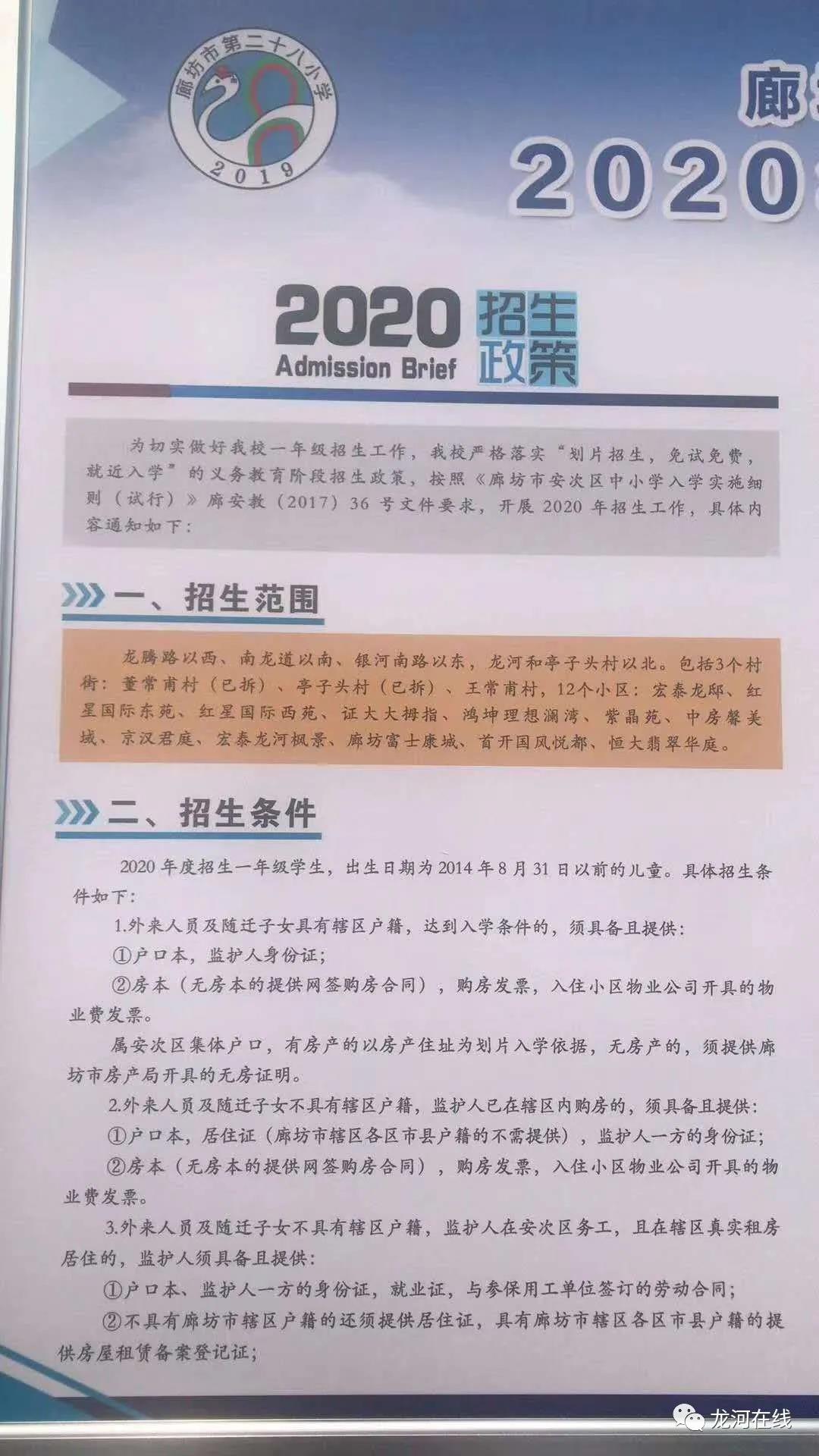 廊坊市第二十八小学(龙河一小)2020年招生简章