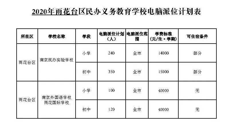 根据南京《2020年全市义务教育学校招生入学实施意见》(以下简称《意见》),今天,各区教育局公布民办学校和热点公办学校电脑随机派位计划。