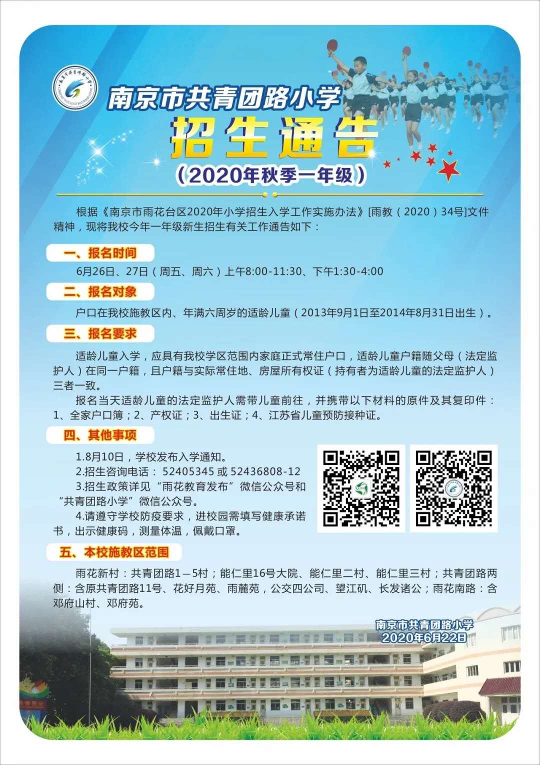3.招生政策详见“雨花教育发布”微信公众号和“共青团路小学”微信公众号。