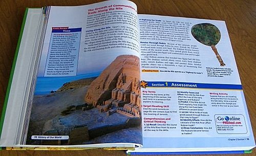 上周去了一个美国人家里做客,他家有6个小孩,都是上小学和中学的年纪。我对美国历史教科书中中国的部分很有兴趣,主人给我拿了三本历史课本,他家小孩用的,我拍了中国部分的照片,有一本拍到了封面,另外两本忘记了拍封面,有兴趣的和我一起看。 我也问他美国的学校有没有统一的历史教科书,他说不统一的,但公立学一般会从常用的几本中选择。