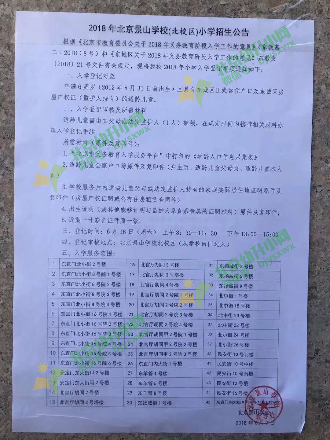 北京市东城区景山学校北校区最新招生简章及划片信息: