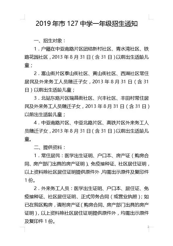 乌鲁木齐市127中学一年级2019年招生简章、划片信息及幼小衔接资源、书籍推荐