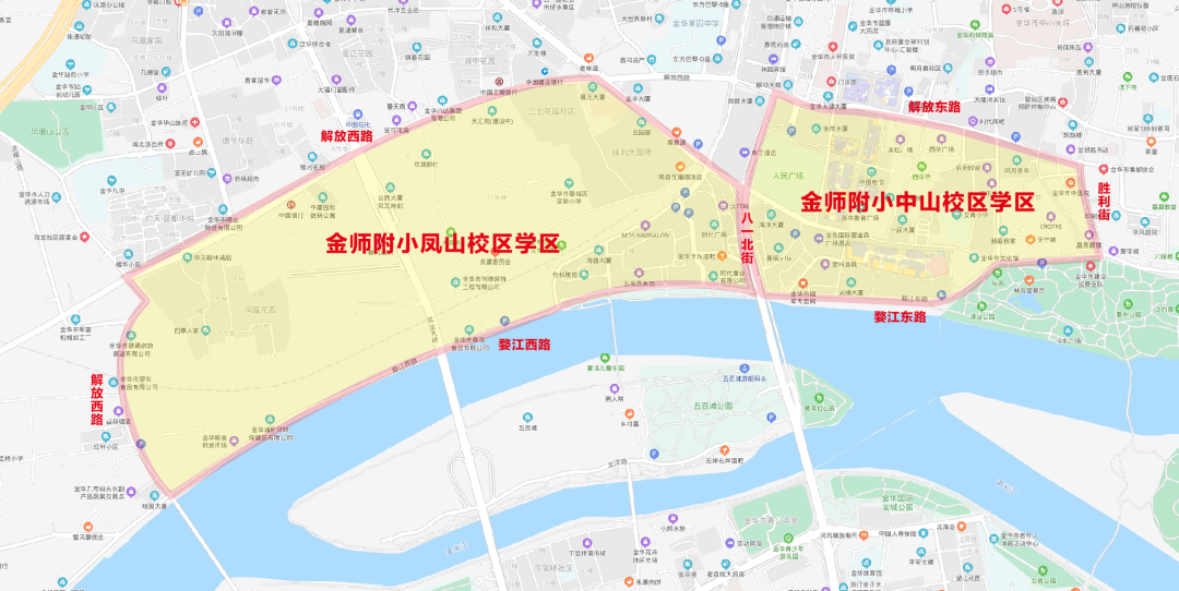 胜利街以西,解放东路以南,八一北街以东,婺江东路以北。