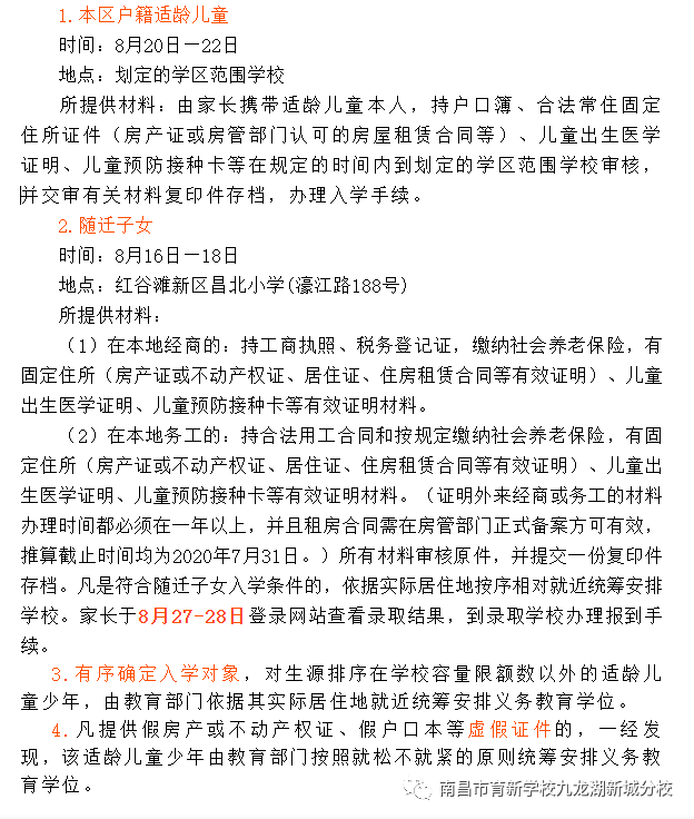 根据《南昌市教育局关于做好2020年义务教育免试就近入学工作的实施意见》的有关要求,红谷滩区从8月6日起,启动2020年小学一年级新生报名工作,现将有关事项通知如下: