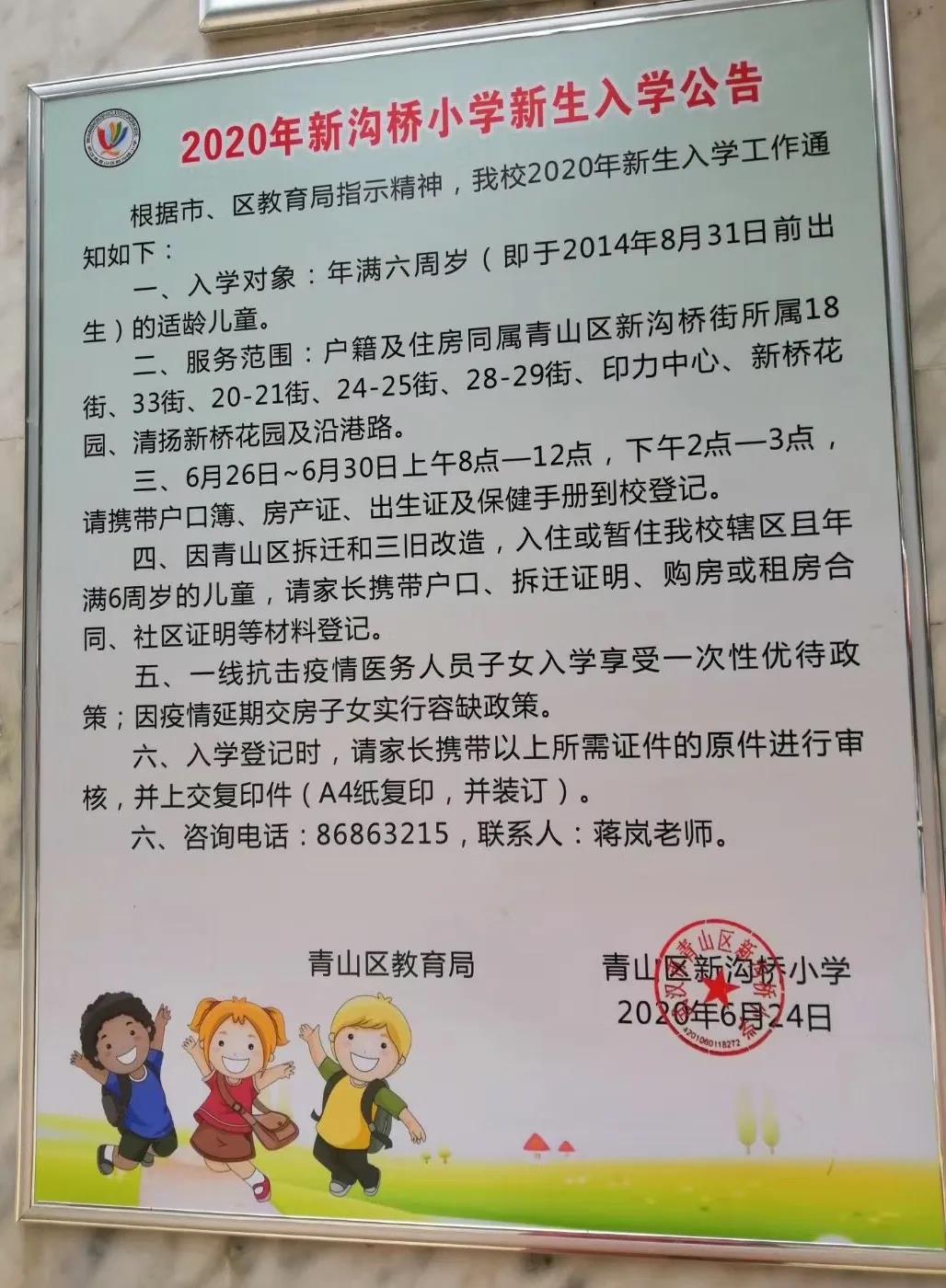 2020年武汉市青山区新沟桥小学新生入学招生公告