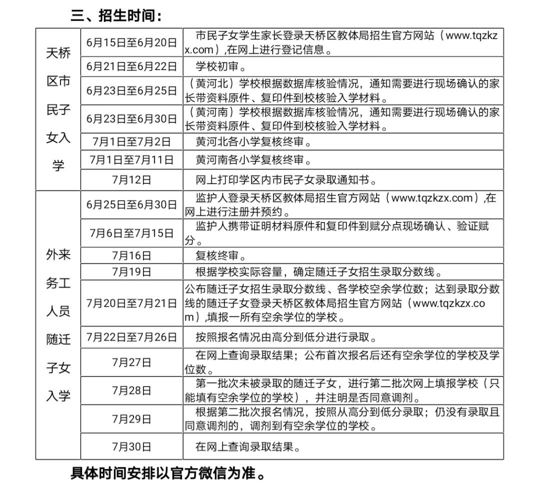 ②居住证(或暂住证)在其他区县的,不在天桥区招生范围内。根据居住证(或暂住证)在天桥区时间长短按照不同分值赋分。