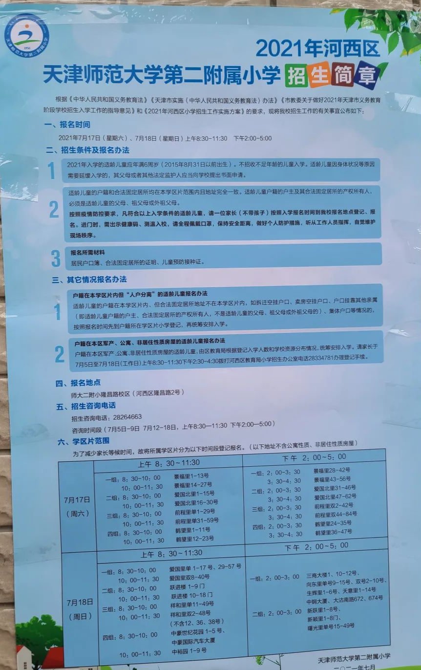 2021年天津市河西区师范大学第二附属小学招生简章,含招生咨询电话和学区范围划分